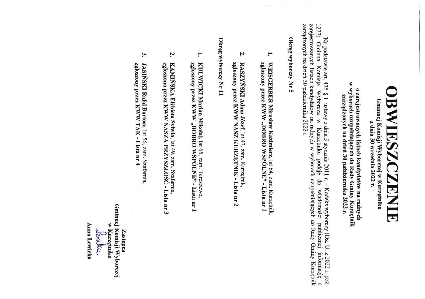 Wersja nieobowiązująca z dnia 03-10-2022 15:25:13 Drukuj Wybory uzupełniające do Rady Gminy 2022 WYBORY UZUPEŁNIAJĄCE - wzory dokumentów dla komitetów wyborczych Załączniki Obwieszczenie Wójta Gminy Kurzętnik z dnia 30 września 2022 r. format: pdf, rozmiar: 243.46 KB, data dodania: 30-09-2022 13:56:17 Informacje dodatkowe do Obwieszczenia Wójta Gminy Kurzętnik z dnia 30 września 2022 r. format: pdf, rozmiar: 482.98 KB, data dodania: 30-09-2022 13:56:17 Obwieszczenie Gminnej Komisji Wyborczej 30.09.22 format: image/jpeg, rozmiar: 138.35 KB, data dodania: 30-09-2022 14:05:55 Informacja o losowaniach ObKW format: pdf, rozmiar: 166.45 KB, data dodania: 03-10-2022 15:25:13 Stronicowanie 1 2 Wersja nieobowiązująca Strona może zawierać nieaktualną treść i załączniki. Możesz pozostać na tej stronie lub przejść na wersję z obowiązującą zawartością. Nie pokazuj ponownie Pozostań Przejdź do wersji obowiązującej