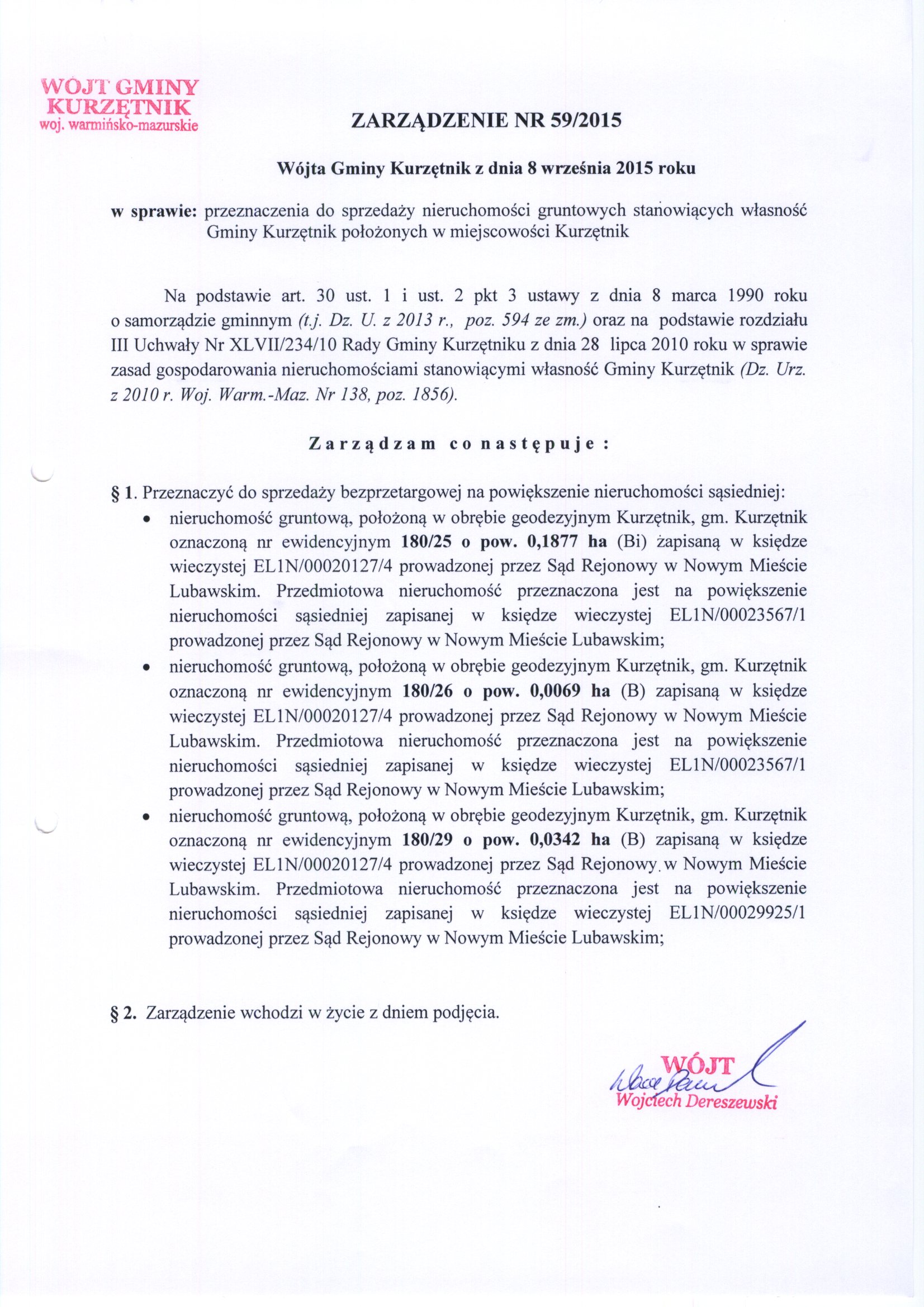 w sprawie: przeznaczenia do sprzedaży nieruchomości gruntowych stanowiących własność Gminy Kurzętnik położonych w miejscowości Kurzętnik